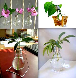 Хотите завести маленький оазис живой пророды на рабочем столе в офисе, в автомобиле, или просто оригинально украсить свой дом? Тогда запасайтесь использованными лампочками! Технология изготовления подобна тем манипулициям, о которых мы уже говорили выше – кашпо могут «парить» в воздухе или скромно украшать подоконник, но поскольку наполнять их будет уже не вода, эти мини-горшочки совсем не обязательно должны быть расположены вертикально. Дизайнеры предлагают наклонить лампочку под углом – и смотрится интереснее, и растениям места больше. Внутрь помещается немного земли и зелень (попроще и неприхотливей): зелёный мох, кактусы, молочай и прочие фотосинтезирующие друзья, которым главное – быть на свету да изредка быть политыми заботливой рукой.